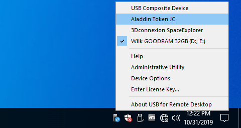 只需在远程会话的托盘菜单中单击“远程桌面 USB”图标,然后从列表中选择设备即可。